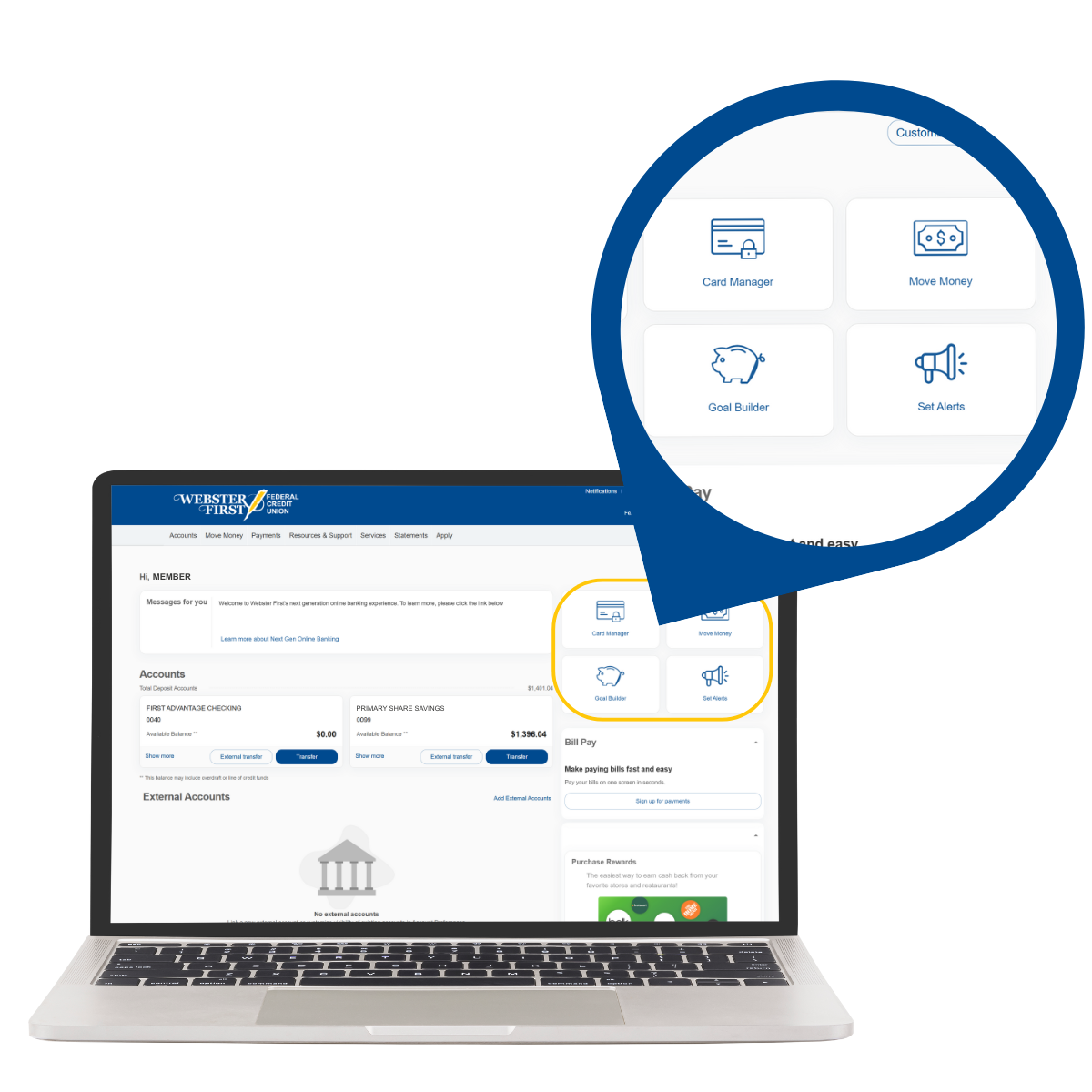 Our digital banking upgrade wouldn’t be complete without carrying over the tools and features members rely on daily. Rest assured, the following member-favorite functionalities will still be here to make managing your finances effortless.