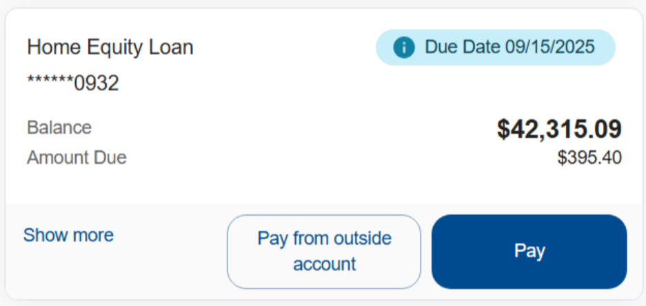Navigating your finances should feel as simple as scrolling your favorite app. This new design prioritizes sleek, streamlined visuals. Sophisticated yet clean layouts make important account information clear and easy to spot on the new My Accounts section of the home page. Action buttons like statements, pay loan, or transfers are displayed right on the account tile.