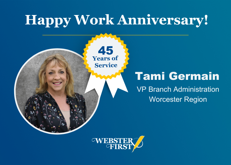 We would like to congratulate Tami Germain for achieving an impressive milestone at Webster First Federal Credit Union – 45 years of service!